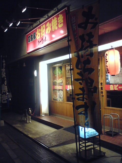 我孫子市役所から西へ1分。ファミレスの向かい側にある、広島風お好み焼き「みーちゃん」です。左下に犬が見えますが、お店のディスプレイではなくお客の連れでした。勝手に触ると怒られますので注意。わんわん。