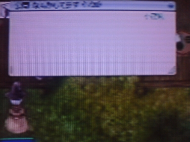 ご利用は計画的に。 別に明確な用途があったわけではなく、あれば面白いねというレベルでダウンスキャンコンバータを買ってしまいました。amazonでの購入で、今思えばどうしてこれを選んでしまったかはかなり疑問。サンワサプライのVGA-TVCというもので、VGA15pin→S端子/コンポーネントへの変換出力が可能です。 似たような商品としては、他にもバッファロー等の製品があり、しかも性能はそっちが上、価格は一緒です。もう、理由はボックスタイプではなく、ケーブルと中間にある手のひらサイズの丸い変換機だけで構成されていることと、在庫1個というamazon罠にはまったということでしょう。ちなみに、今日amazon見てみたら、まだ在庫1個と表示されていました。もふー。 後から調べてみると、このVGA-TVCはVHSビデオ程度の画質で、どうにも鑑賞に耐えないということがわかりました。実際に見てみると、まさにその通り。ROの画像を映してみたところ、ちょっとやばいくらいに…。 画面に近づいてマクロモードで撮影しましたが、まず画面の文字自体が判別不能でした。 絵のにじみ具合も、20年前のビデオデッキ風味で、ノスタルジックな…わけないだろこらー!