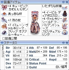 装備の持ち替えをしない場合には、ホーリーステッキセットは非常に優秀な詠唱時間を達成していると思います。やはり25%というのは数値としても体感としても、あきらかな違いとして現れますしね。一番下のは、わたしが普段持ち替えている場合の数値です。マジックアイズが追加されているので、やや勝る数値にはなっていますが、安定度を重視したい場合には、普通にホーリーステッキで十分な数値だと思います。 ちなみに…威力計算でホーリーステッキに刺す前提のカードですが…不死+10%カードはエンシェントツリーなので入手は比較的容易ですが、悪魔+10%カードはヘルアポカリプスでした。こちらは…どうするんでしょうねー。あと、茨の杖の検証では女神の仮面を装備することができますが、多少の底上げ程度だったことと、普段の狩りであれば安定度重視でいたずら妖精が優秀なことから比較対象とはしていません。火力も必要ですが、名無し2Fや機械工場では被弾軽減も重要ですしね。 以前検証した際には、スロットのない盾として大きなペナルティがあった駆魔の聖書は選択肢としてはありえませんでした。しかし今回の実装により、十分な実用装備として復帰を果たしたといえます。駆け出しMEプリでこれから技術を磨いていく人、持ち替えよりも、もっと戦局や段取りを重視したい人にはお勧めです。 |
