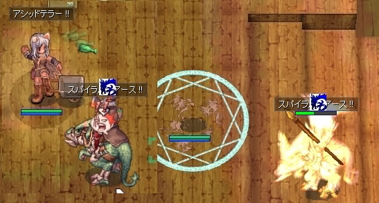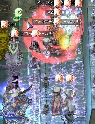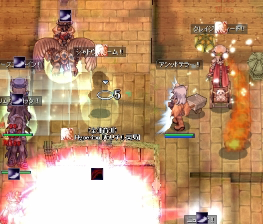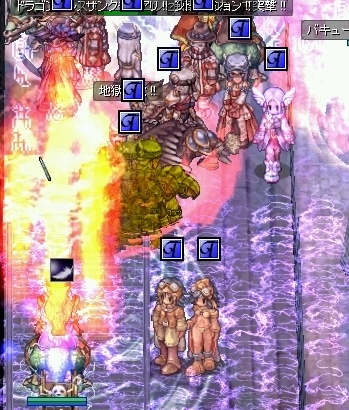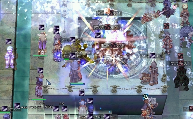 そこへ到来したのは桜さん。WP抜けた途端にドラゴンブレス!ちょうど更新タイミングだったニュマのない側の人が一気にHP削られます。ニュマ置いて、サンク敷いて…またニュマ置いて…。エフェクト見えないから10秒数えてニュマ更新。タイミング悪くて設置失敗したままでも泣かないようにー。