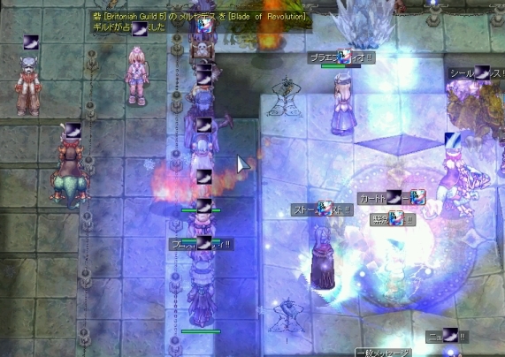 エンペを割ったら、予定通りに北端の旗から各所へ移動、砦内の転送をお試しです。きっと指揮から2-1に遊撃派遣よろーとか慣れてくるとそんな感じの指示が飛ぶようになるんでしょう。そんな中で流れるギルチャ。