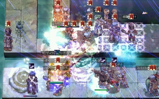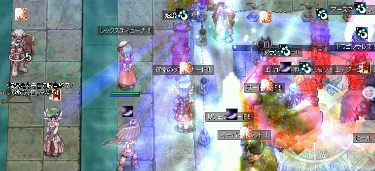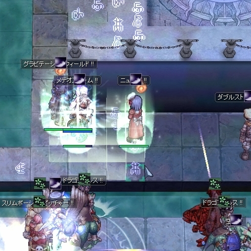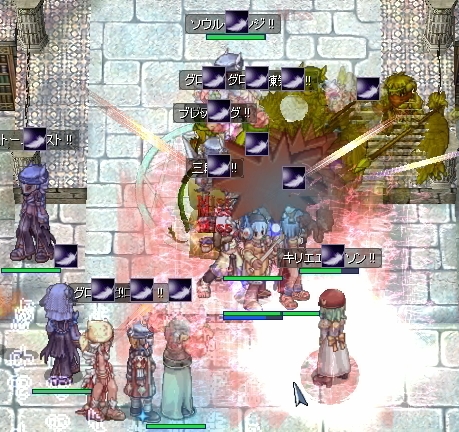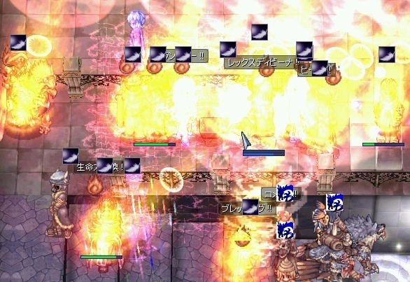 プリはアクティブな攻撃スキルを持たないので、ブレス速度を回したら後はやることがありません。ニュマを置こう。どんどん置こう。しかし大魔法のエフェクトで設置場所が確認しにくい…。地形から想定して勘で3セルずらして設置を続けていました。
