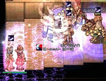 そんなに人数多い防衛ラインでもないのに、寄せ手は切れ目なくWPを超えてきます。おかげでそんなにSPに余裕のない民は、地獄連打しすぎてエネルギー切れに…。ラストの確保戦向けに積んでいた青ポーションもなくなり、SP欲しいよ!と叫んだりもしましたが、RKの人が2PC皿を戦線復帰させようにも人が多くてままならない様子。