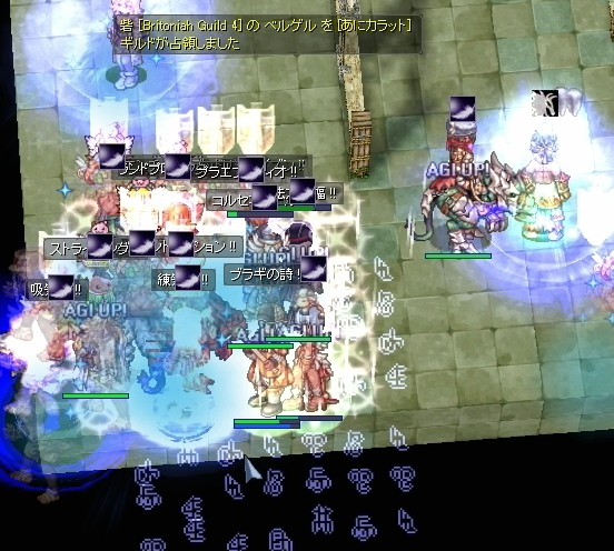 ここでの対抗は君の体型オフサイドさん。職構成も豊富で、勢いのあるギルドさんです。つまり、わたしたちには、ちょーと荷が重いのかも。しかし存分に暴れるチャンスなので、支援ユニットとしてはどんどんブラギに巻き込んで戦線を拡大していきたいところです。