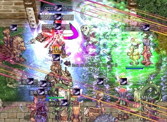 なんとかバキュームや支援の合間をぬって、皿の人が変換ぱしーん、プリの人が植樹してくれてSPは復活です。しかし、SP温存モードで地獄設置を薄めにしていたことが裏目に出て、獄煉さんの一気突入で地獄飽和。防衛ラインがぼろぼろになってしまいました。ううーっ。