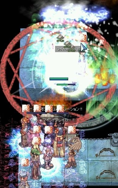 と、アナウンスする間もなく、突撃開始。ロキだけは直前に更新したものの、Nonさんの突破力にER内もだいぶ押し込まれてしまったようです。20人くらい、いたんじゃなかろうかー。