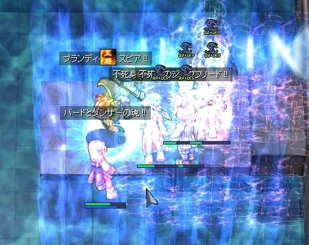 よーく見ると、鳥が中段通路にぽつーんと立っていました。うわやばい、急いで上段に上らないとWizが大変なことに。WoDさんのスクリーム、前回もひどい目にあったので、ジークの守りは最優先です。