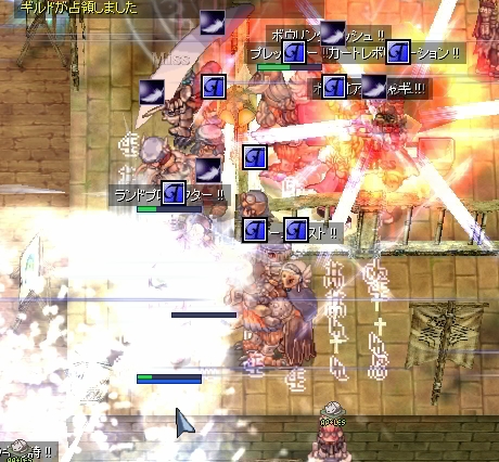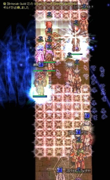 EmCでMAP3の高台に集結。ご近所には共闘チャットで準備万端のギルドもスタンバイ。と思ったら魂投げてる最中にいきなり死に戻りです。