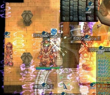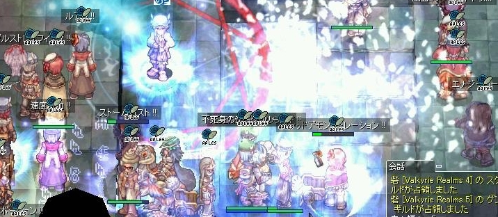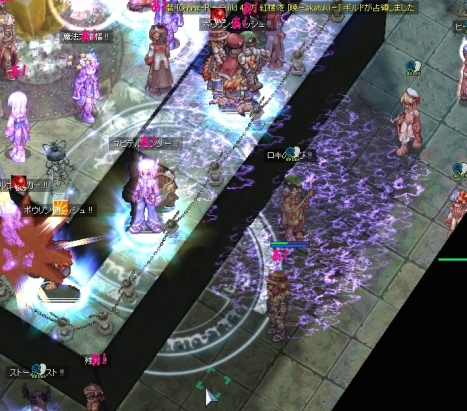 しかし突撃は一気にやってきました。どとーのような、とつげきだ。ごっちゃん狙いの暁LKの人もいますし、気を抜けない展開です。というか、一気に押されてギルメンのin/outログがたくさん流れてるぅ。