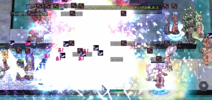 指揮から解除指示が飛ぶのと同じく、Gale of Windさんの突撃がありました。その中でロキの鳥が殴られて退場。しかし同時にエンペが割れて寄せ手を退場させることに成功します。残り時間は1分。もう勝ちは確定的ですね。ロキが崩れたのは残念ですが、ダンサのみ忘れないでを展開し、時間切れを待って無事確保となりました。
