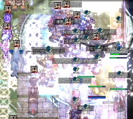 あと、エンペまで攻め込んできたLKの人にストーンカースを試して見ましたが、1度だけ成功してLKの人が真っ黒になりました。近くに阿修羅の人がいればそのままドーンだったのでしょうが、残念ながら時間切れで解除に。まぁエンペへの進行を足止めできたので成果としては十分でしょう。