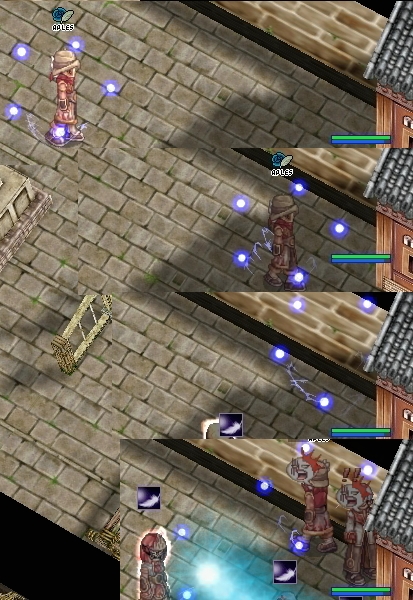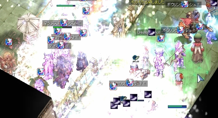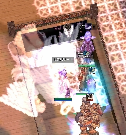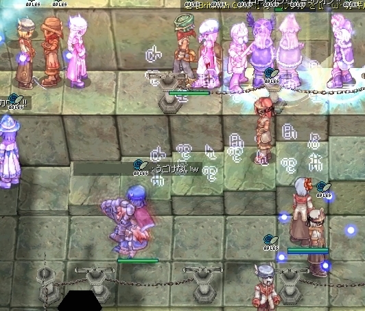 そうこうしていると、WPにちらりと影を見つけます。ルアフで近づくとチェイス発見。WPをいったりきたりクローキングで潜伏を試みようとしているようでした。心の目でタイミングを測り、ルアフで接近。あぶり出しては大魔法にさらし、追い掛け回します。すると潜伏をあきらめたのか、姿を見せたまま外周右側通路へ逃げていきました。チェイスの人ー、そっち、罠おいてますよー。