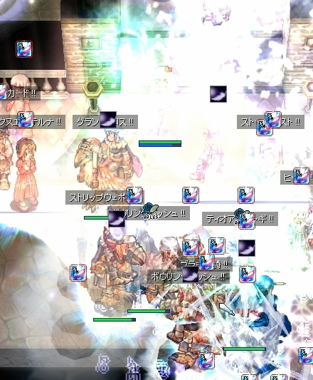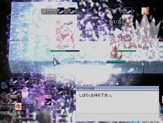 あああああああ、なんというか、Gv初心者ですかわたしは。MAP3のプリの人に怒られました。せっかくの石化で阿修羅待ちをいきなり解放してしまうミスです。自分でも頭で意識する前に手が動いていたので、もうごまかして逃げるしか…。