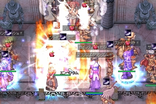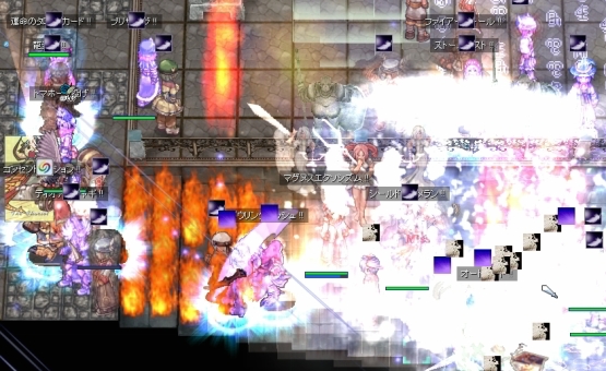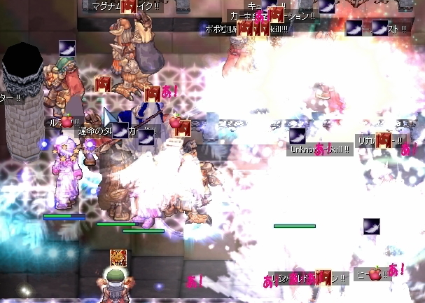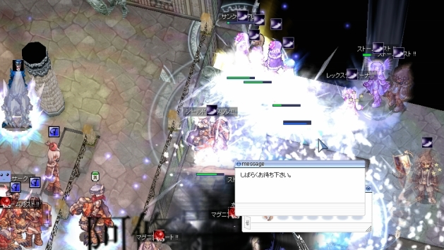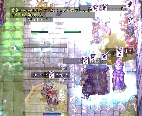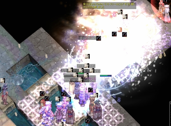 再度EmCからの…今度は死なないように自分勝手なダンスを張りながらWPへ歩きます。しかしアシデモもらって瀕死になったのでエンペまで撤退。様子を見て再びWPを目指します。しかし、再びアシデモで、今度はプリが先に死亡。うろうろせずに、ギルメンに混ざって棒立ちしておくのが正解なのか…。ただ、直後にエンペを割られたようで、防衛時にロキ不在という残念な場面には至りませんでした。まぁ防衛開始できないのも残念な結末ですけど。