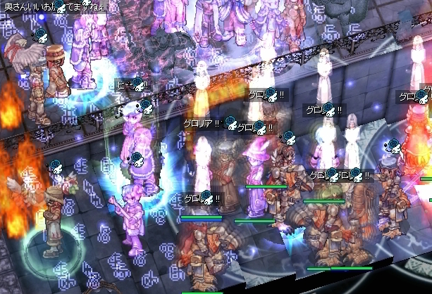 大魔法薄めのため、足止めと削りが十分に機能できず、両脇の通路に流してしまいます。続いて走りこんできたジプの人にスクリームを食らってWiz地帯は機能停止状態。時刻はまだ21:47で、まだまだ解除予定には遠い状態。耐え…られるのか。
