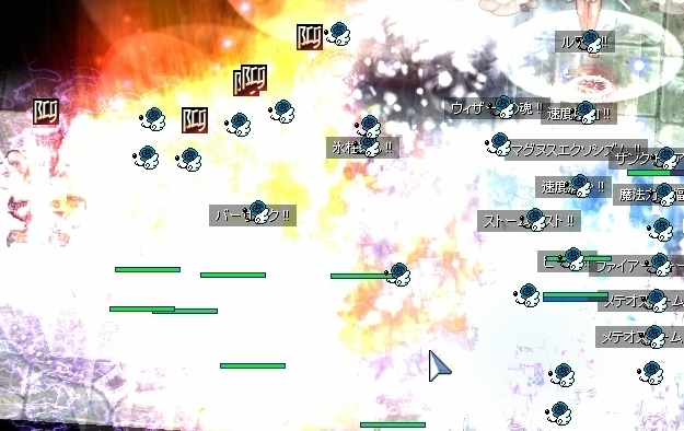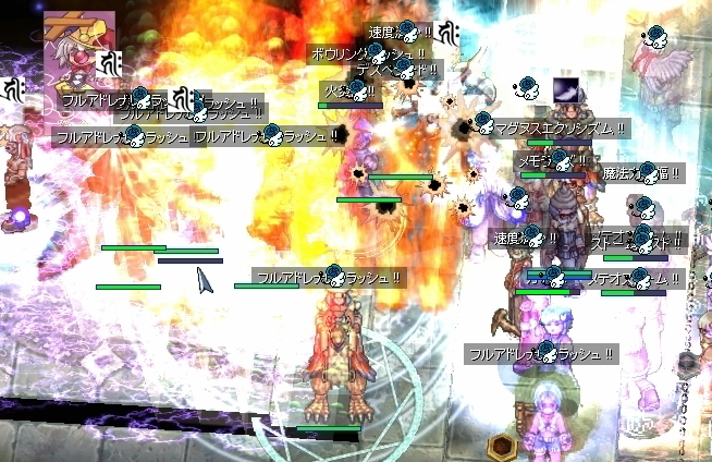 その後は、∫Vermilion Cross∫さんのLKがちょいちょいっと侵入してきましたが、申し合わせたようにWP大魔法とMEを受けてすぐに戻ります。ドル鎧優秀だし、ME痛くないのかもしれませんが、ヒットストップを考えるとアンフロにした方が安全ですよ?