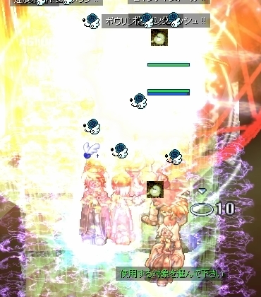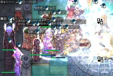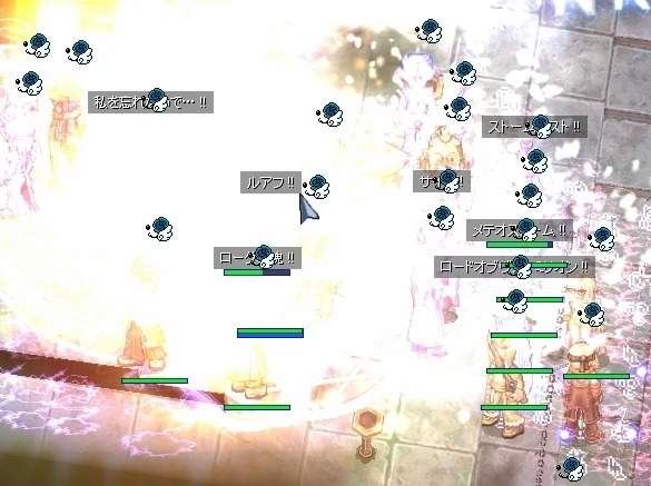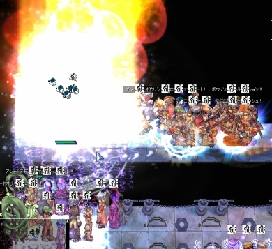 しかし、思ったよりもすんなりと侵入できたエンペ近辺。あ!さんの大魔法やBBが飛び交っていますが、プリの身で突撃に成功してしまいました。これはいける、ぷらちなしーるどの、かつやくだ。
