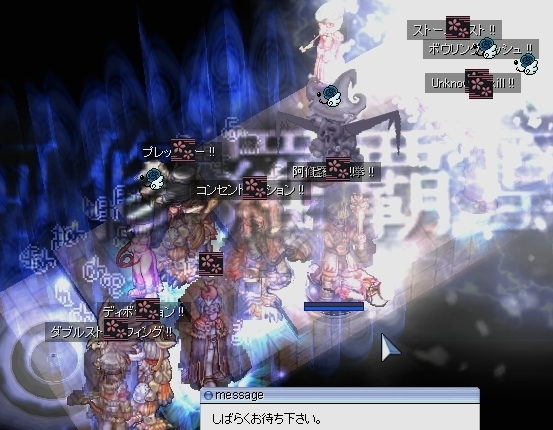 勇んで突入した先には、しっかり待機した前衛陣、折り返した先にはびっしりの罠、そして対岸にはWizとクリエの弾幕が配置されていました。無理でしょ、これ。