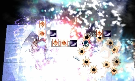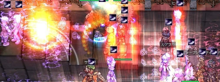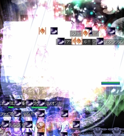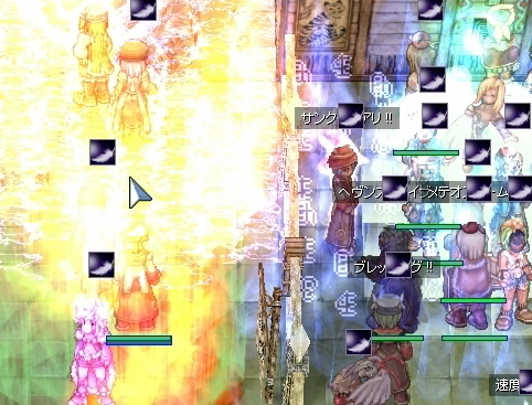 さすがに現状の戦力では、この波を押し返すのは無理なので、消耗品は抑え気味でぎりぎりまで耐える方向で。じわじわと押される中、エンペの味方が減ってゆき、わたしのプリはユピテルサンダー!!と叫んだVCのHWizの人にトドメを刺されていました。なむ。