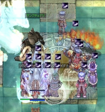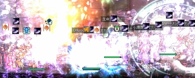 なんだか一部のサーバが開幕時間ずれていたようですが、L1は定刻通りに開始。少々「w」が飛び交いましたが、通常防衛開始です。先週は砂3基での火力集中型でしたが、今週はWizを中心とした防衛。ただし、参加者の職構成から火力薄めでのスタートです。防衛火力が薄いのは仕方がないとあきらめて、逆攻めの活躍に期待します。ER内の排除担当、ほとんどなしでER外に注力する感じで。