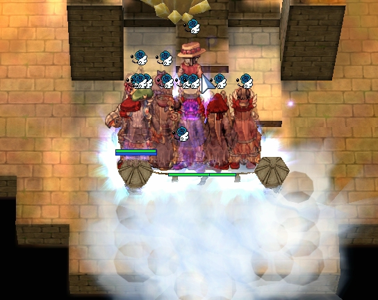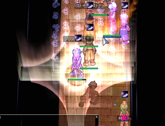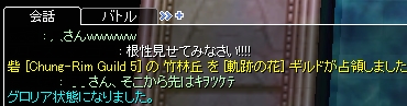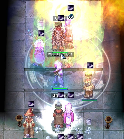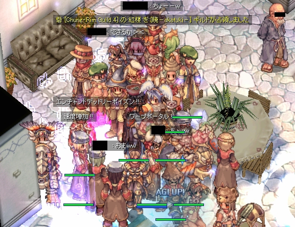 勇者、降臨。 数ヶ月のブランクを経て、ようやくGv復帰することができました。やっとギルドに貢献できるようになりました。勘が鈍っていたり、新しいスタイルになじんでいなかったりと足を引っ張りますけど、みんなよろしく。それと、予想以上の参加で指揮の人、たいへんお疲れさまでした。 ● ベースキャンプ 今週は集会参加者と事前出欠確認で数が揃いそうにないねという雰囲気から、レース主体にしますかという流れで方針を固めていました。ところが、当日になって集まる集まる。2PCも多少含んでいるとはいえ、前衛後衛のPTに納まらず、指揮PTを別に分けるというドタバタからのスタート。作戦についても、勢い防衛攻めにしようよという感じでレースではなく砦の偵察から開始です。事前偵察の結果、スタートをC3に決定しました。 ● 防衛攻め(C3) 砦前支援を済ませると指揮からMAP3まで進軍の指令。道中MAP2ですれ違ったクルセの人が消えました。EmCかな、どこのギルドだったかなと思っていると、指揮から零式さんERでEmCしたという連絡。直後にPreludeさんが攻めに突入したという報告が続き、わたしたちもなだれ込みます。ごたごたした乱戦だったようですが、アタッカの人がうまく割ってくれたようで、軽く防衛してみますかという流れに。 ● 防衛(C3) 橋に後衛を置いて周囲を前衛が対応するスタイルで防衛開始。散発的な偵察レベルなのか、前衛の仕事がいいのかは画面外で確認できませんでしたが、中まで入ってくるのはPreludeさんくらいで、特に問題なく防衛を維持。途中でブラギの人が落ちたみたいなので、EmCで回収して建て直ししたくらいがイベントでした。 なんでみんな呪われてるのー。 集結した時、笑ってしまいました。 内側に支援回して歩き回っているときにNon~のチャンプの人を見かけたので、SoCでも持っていたのかもしれませんね。 いいネタ提供してくれてありがとう。 そしてもっと笑ったのがこちら。 うちでもバカンスセットで防衛だ!みたいな話は出ていたのですが、しっかり実行してくるあたり、夏休み気分をわかっていらっしゃる。さすがですね。 その後は、20分ほど防衛を維持したところで、飽きてきたので次探しましょうという流れで偵察が出て行きます。数分後、軌跡の花さんに割られて終了。 ● 中休み(C3/C5/L3) 偵察を入れてV1に一度攻め入りましたが、対抗不在ブラギ不在ということで即放棄。C3への転戦となりました。城主かるがものお家さんのまま、遅延防衛をしていましたが、偵察に出ているところから指示。転戦のためC3ブレイクしてEmCでC5へ移動となりました。 飛んだ先は城主雪天使さんで、Hyperionさんがエンペに寄っている状態でした。そのままブレイクして防衛開始です。が…ちょっと守ったところで高台の後衛全滅。どうやら無詠唱で大魔法をもらった様子。ねこぱんちさんだったみたいです。やられた…。 裏では転戦先を見繕っていたところですが、陽光の箱を使われてEmC阻止されていた様子。C5も守りきれないのでベースキャンプで集合します。ちなみに、C5はHyperionさんに割られたとのこと。 L3では城主KITさんをEmCからの奇襲でブレイク、そのまま防衛へ。バードの人が参戦したため、WPにロキを張ることに。これでWP大魔法を牽制できます。途中でいくつか偵察を受けましたが、Preludeさん、零式さんの攻めを受けて崩壊しました。 ● 防衛(B4) そろそろ時間も押してきたので、防衛を維持しつつレース部隊を派遣することに。防衛自体は侵入が少ないために問題なしでしたが、裏で活動しているレース班がどこも防衛にぶつかって展開できない状態に。もう、ギルチャは悲鳴の連続でカオスになっていました。 そして砦が見つからないままにBLSMのみなさまご来場。ロキはWPにかぶせる形で設置していたため、WP出現位置からロキの端まで2セル程度でした。教授がすっと移動してLP設置した時点で大魔法終了。なだれこまれて総崩れになりました。あらかじめ待機してもらっていたため、遅延解除は成功しましたが、別砦捜索のためEmC不在で建て直しできず。レース展開だったC5を最終候補として決定します。 ● ラスト C砦はどこも防衛でがっちり。最後まで動いていたC5にEmCからの全力攻めです。エンペにとりついていたのは数名。戦力的にはかなり有利でしたが、いくつかトラブルを抱えていたため、まさかのブレイク失敗。後から戦力増強してきたZEVさんに競り負けてしまう結果に。 すぐにリターンかけてみましたが、時間ぎりぎりだったため奪還には及びませんでした。残念。 ● まとめ 久しぶりの参戦で、どのタイミングで何をすれば効果的なのかをすっかり忘れていました。あと、必死すぎてギルチャの確認もちゃんとできてなかったし。 立ち回りについては今後回数を重ねれば取り戻せるとして、今回の課題は教授PTのプリ不在と、偵察用ポタでした。前者については、PT編成で突発的な配置だったので仕方ないことと、途中でサンク設置の指示が