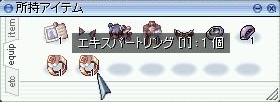 えらく素早いなとお思いでしょうが、実はケミお座りの際に、いつの間にか拾っていたアクセサリ2個がたまたま倉庫に眠っていて、鑑定してみたらエキスパートリングでした。ドロップ率は0.03%なので、カードが出るよりも何倍も嬉しいです。倉庫が300個到達であふれたため、いらないもの、未鑑定のものを整理していたら発見したという危うさ。もう少し気づくのが遅ければ、買いチャット出していたところです。後から気づいて、4つもいらない…orzとがっくりしてしまうところでした。