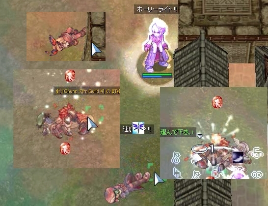 いや、功ばっかりです。 GH修道院をケミのお座り場所として開拓しようと試みたわけですが、どうやら目の錯覚で、思ったほどには効率が良くないことがわかってしまいました。安全性と金銭と経験を併せ持つ夢の狩場かと思ったのもつかの間、初夢の続きを見ていたのかと思うほどに儚く消え去りました。 気落ちしてばかりもいられないので、ここはちょっと力入れてケミを座らせようと名無し2Fへ突撃。ケミは完全回避装備でMAPの片隅に座らせます。アクセサリには片方をハイディングベルトにし、緊急時の時間稼ぎも万全。そこで思いました。ヨーヨー帽装備していたらヨーヨークリップをもう一つ装備できるじゃないか。しかし、もう狩場へ着いてしまいました。気を取り直して教範入れてお座り開始です。 結果。教範の切れる30分でLv91ケミが29.9%→46%に育ちました。必要経験値が11m強なので、16%で1.8Mexpの計算。さすが1.5倍期間だ、いつもの倍は出てるぜ。って、30分でそれだけ出たのは初めてでした。ちょっとびっくり。相当な密度で敵を倒していたんですね…。これはうまい。 落ち着いたところで思い返してみると、ケミのお座り場所が一度も襲撃を受けていませんでした。普段であれば、2~3度は襲撃を受け、その度にハイディングさせてからプリをテレポで呼び戻すというロスが発生していましたが、今回の効率を出せたのは、一度も割り込みが入らなかったためのようです。つまり…。ハエ400個ほど持たせて、フットスイッチでハエボタンを押しつつ狩をすればいいんだ。そうだ。そうにちがいない。 と、ばかなことを考えてしまうほどの出来すぎなセッションでした。今度、ヨーヨー帽での安定度についても検証してみたいと思います。 |