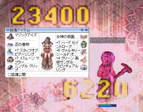 いつもMdef装備のため魔法なんて痛くないんですが、その分だけ物理攻撃にとても弱いです。弓職とか魂SBとか物理部分に効いてくる攻撃は素直に痛いですね。今回も弓が見えたのでニュマを置いたところにプレッシャー→阿修羅ドーンと退場させられてしまいました。