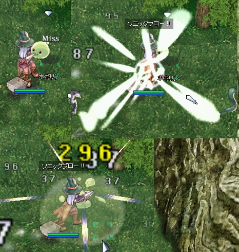 画像は、ウルフを倒したところに落ちたイチゴを狙ってきた不届きなポポリンを迎撃した様子です。ゆるしませんよー。 左上で攻撃開始、そして右上で即発動するソニックブロー。最後に下のように見事撃破、となりました。こ、これが、けみの、しんの、すがた…。 さて、ようやく目的達成したわけですが、時間と材料の都合で製薬トライは先送りに。主力商品の青ポーションも、成功率向上でコストを下げることができたわけで、少し値上げしていた露店価格を再び引き下げることもできそうです。ただ、最近は青ハーブの供給が思わしくないため、製薬自体が困難になりつつあるという懸念材料も残っているのですが、今回のホムスキルは偉大な前進でした。 |