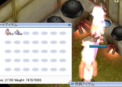 Mob少ない時は気にならなかったのですが、狩場独占状態では、とんでもない数のMobが寄ってきます。これは、2PC操作でふらふらうろつくケミが追加のMobを引き寄せるのが主な原因ですが、ME発動してしまえば全部プリ側に流れてくるので、ケミがずっと危険な状態にさらされることもなく、かなり安定した感じでした。 Mobの多さは鎧のAG発動が目立っていたことからもわかりますが、ある程度ケミを放置しても平気なのはかなり精神的な余裕につながりました。また、追尾がうまく行かなくてヒットストップでME範囲内に入れないという場面も少なくありませんでしたが、カーンという音とともに、するすると歩き出すケミを見られるのもいい感じでした。AG鎧、いいなぁ。 1.5倍期間が終わってしまえば、また1時間で5%の生活に戻るわけですが、このインフレに体が慣れてしまうと戻れない…教範常用とか、モチベーション低下とか副作用が怖いです。 |