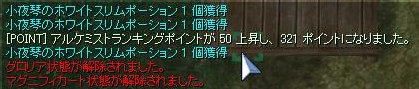 白スリムPOTは、通常白POT15に対して重量5という軽さが魅力です。回復量は通常白POTと同じ。わたしの職はWizプリなので、重量制限が非常に厳しく、白POTなら10~15個が所持限界です。これを白スリムPOTにすれば、単純計算で3倍の搭載を期待できます。まぁそこまで持ちませんけど。