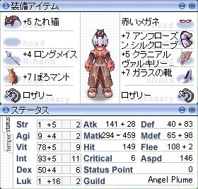 後はマルスカードをなんとか入手して水属性+30%と、水レジストPOTでさらに強化すれば、大魔法地帯で蒸発する危険性をかなり下げられるのではないかと期待しています。毎度アタッカーの人に頼りきりで蒸発するのも悔しいことですしね。でも、マルスカードって入手困難なような…。